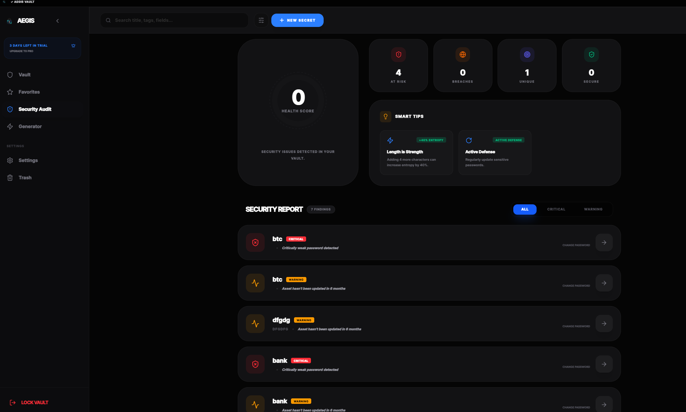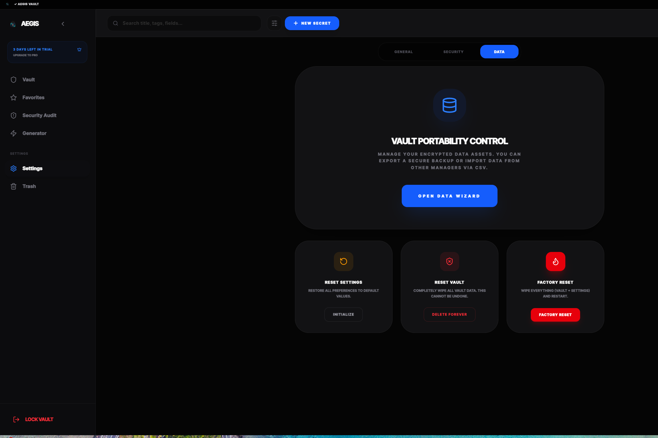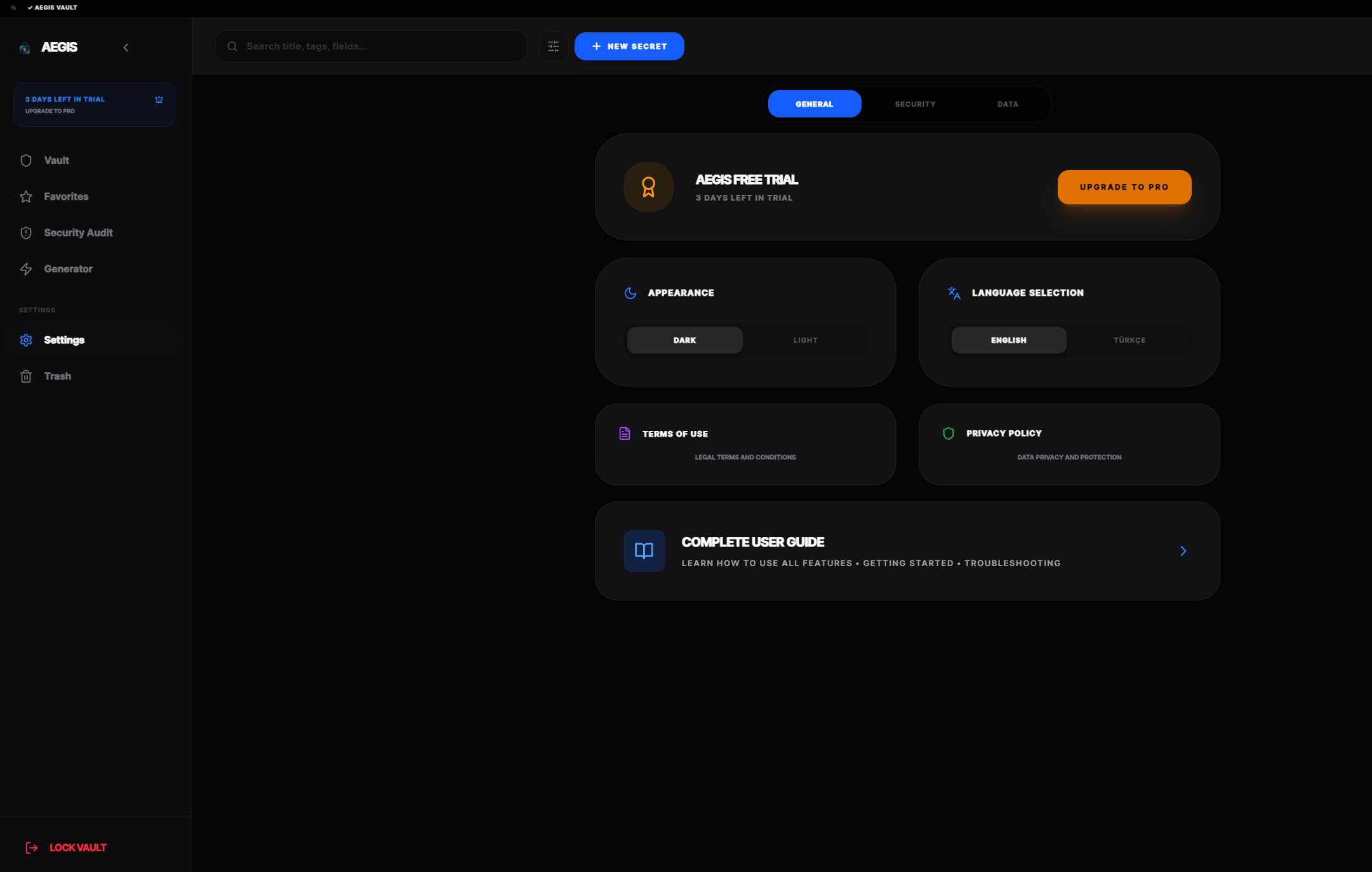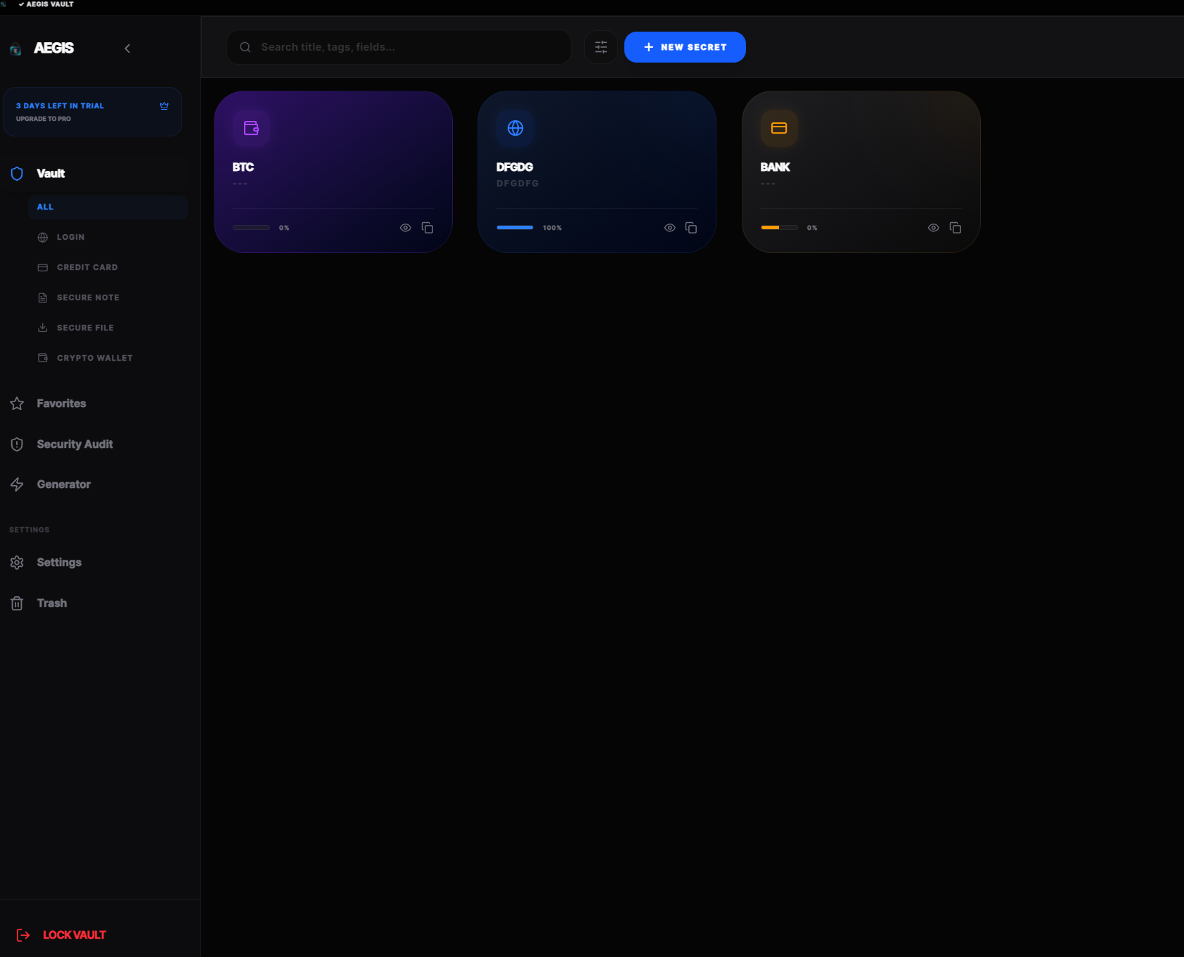 Aegis Vault'un modern ve kullanıcı dostu arayüzüne göz atın.